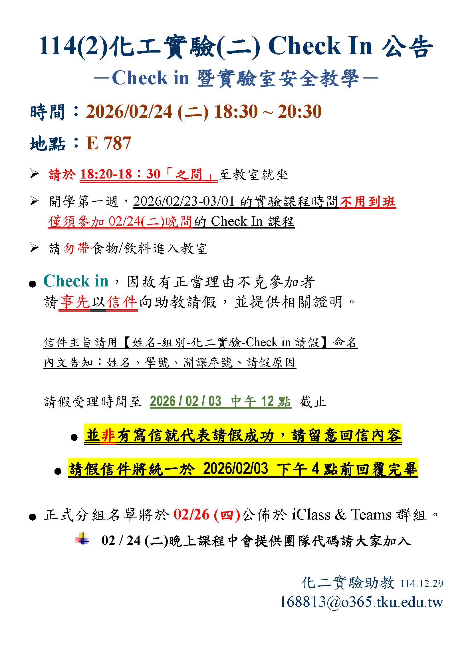114(2) 大三-化工實驗(二) Check In 公告