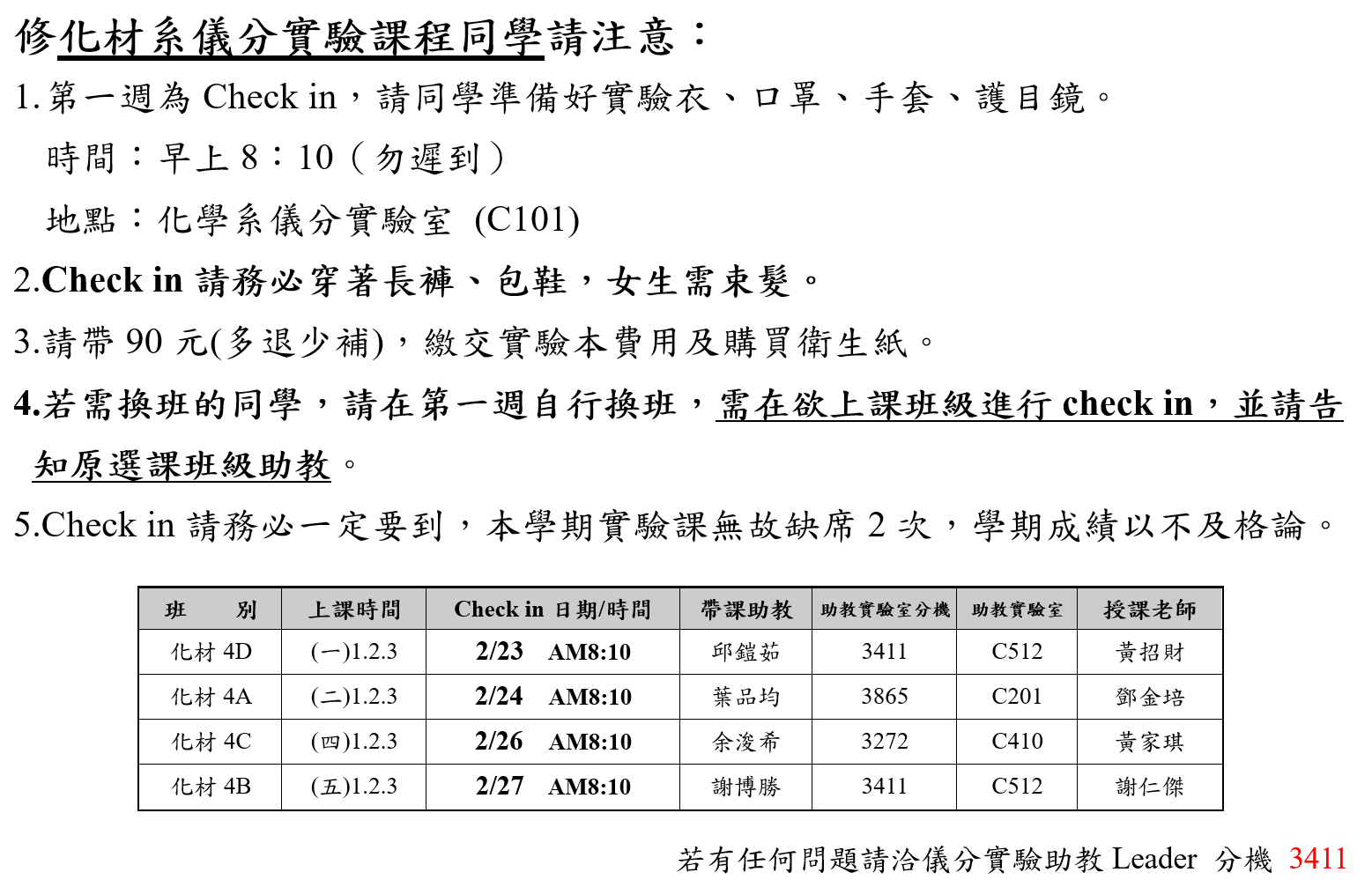 114(2) 大四-儀分實驗 Check In 公告