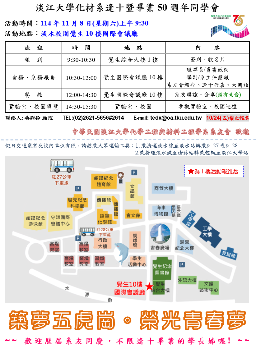 2025淡江大學化材系逢十暨畢業50週年同學會