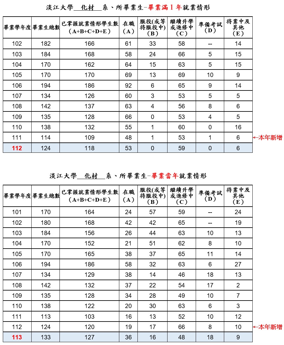 畢業生就業追蹤情形(更新至114年11月26日)